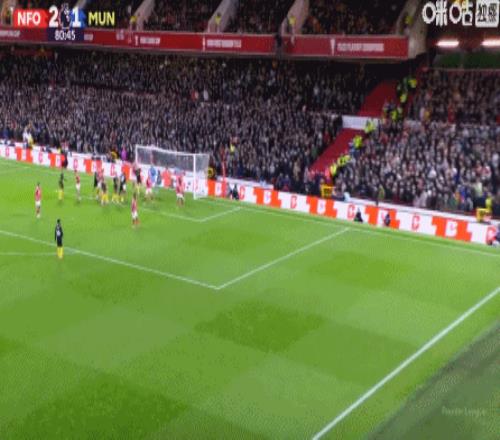在曼联客场与诺丁汉森林的比赛进行至80分钟时,曼联客场1-2落后森林。第81分钟,曼联角球被解围到禁区弧顶处,守候在此的阿马德-迪亚洛不等皮球落地,在防守球员封堵前抢先完成凌空打门,皮球挂出一道抛物线直挂死角!